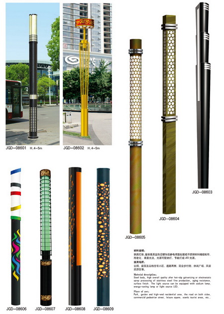 景觀燈分類:城市標志性景觀燈、仿古景觀燈、鏤空現代景觀燈、不銹鋼景觀燈、藝術造型景觀燈等